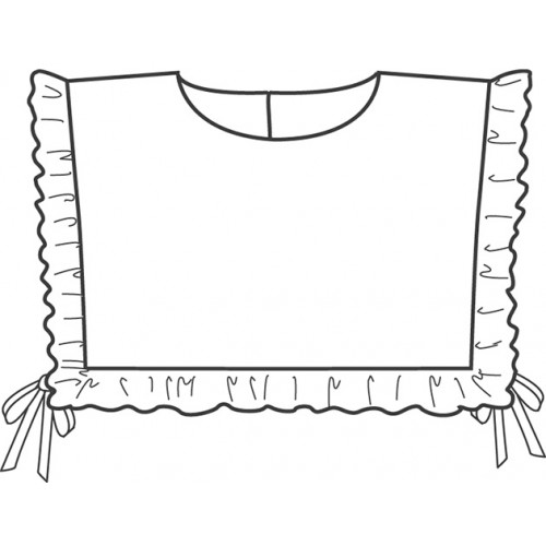 For the high-waisted version or ruffled rounded collar: 0.40 m for 3 months, 0.45 m for 6 months, 0.50 m for 12 months, 0.50 m for 18 months, 0.55 m for 2 years.