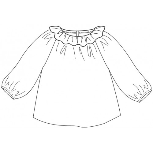 Patron de couture : blouse à manches raglan et col volanté, boutonnée dans le dos, avec bloomer