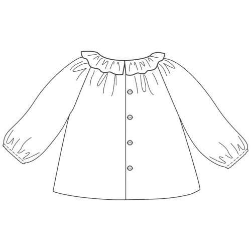 Blouse à manches raglan et col volanté, boutonnée dans le dos, avec bloomer
